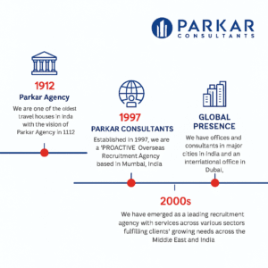 We take immense pleasure in introducing ourselves as one of India’s most trusted and professional overseas recruitment consultants. PARKAR CONSULTANTS is the vision of the historic Parkar Agency, established in 1912, known as one of the oldest and most respected travel houses in India.